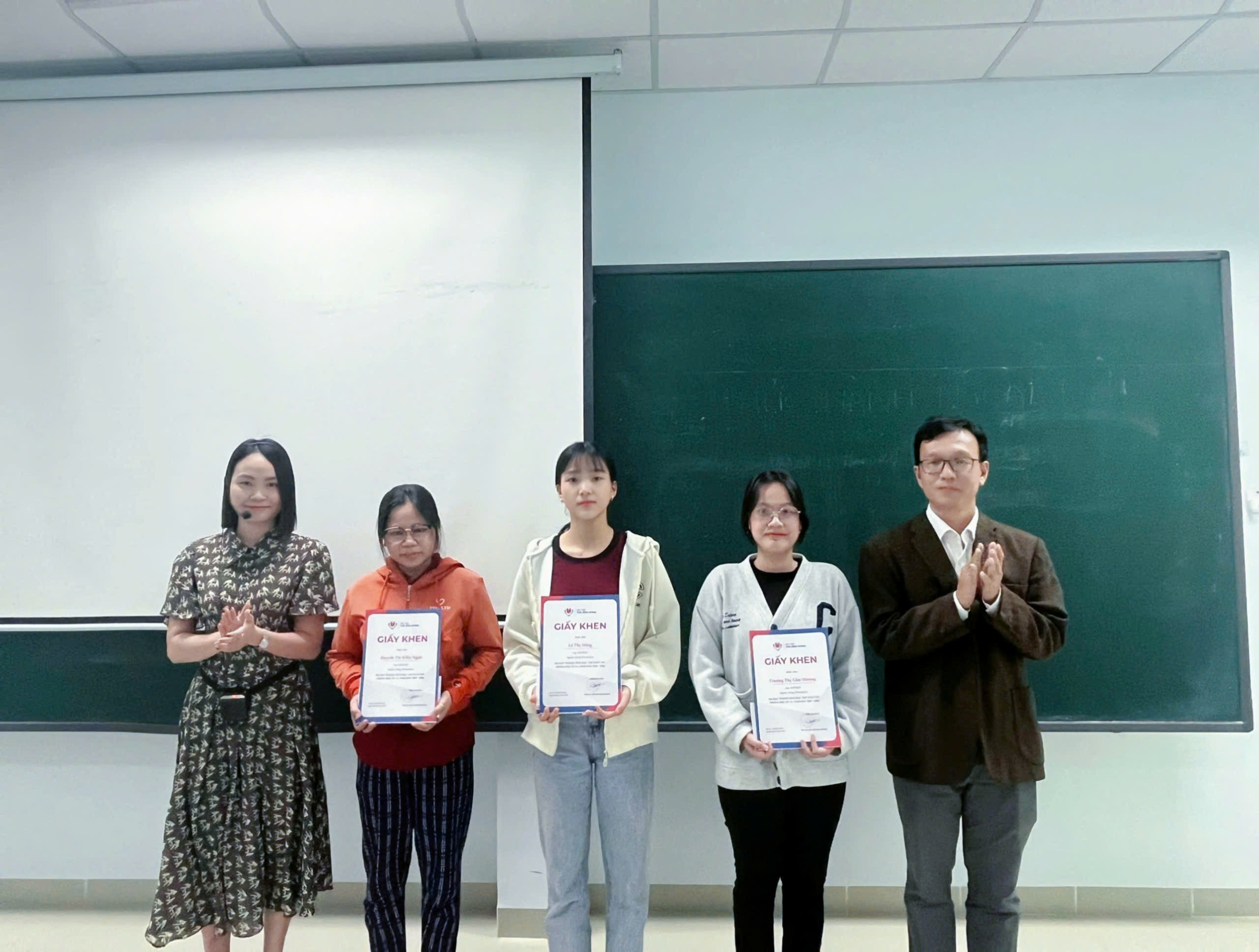 Trong không khí học tập nghiêm túc và gần gũi, Ban Giám hiệu Nhà trường đã trực tiếp đến các lớp học để trao tặng và động viên sinh viên có thành tích học tập tốt, đồng thời tích cực tham gia các hoạt động phong trào của Nhà trường. Tại các lớp học của Bộ môn Tiếng Trung, Ban Giám hiệu đã trao khen thưởng cho 06 sinh viên có nhiều nỗ lực và kết quả học tập đáng ghi nhận. Đặc biệt, trong số đó có 01 sinh viên học vượt, được Nhà trường trao tặng phần khen thưởng riêng như một sự ghi nhận cho tinh thần học tập nghiêm túc và ý chí phấn đấu không ngừng. Hoạt động trao khen thưởng được thực hiện ngay tại lớp học không chỉ thể hiện sự quan tâm sát sao của Ban Giám hiệu đối với sinh viên, mà còn góp phần tạo động lực, khích lệ tinh thần học tập cho toàn thể sinh viên Bộ môn Tiếng Trung nói riêng và sinh viên toàn Khoa nói chung.